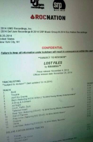 The rumor mill is in full production mode and everyone is scrambling to make sense of what could be. Yesterday, an internal memo from Roc Nation “leaked”, detailing what appears to be Rihanna‘s upcoming studio album Lost Files.